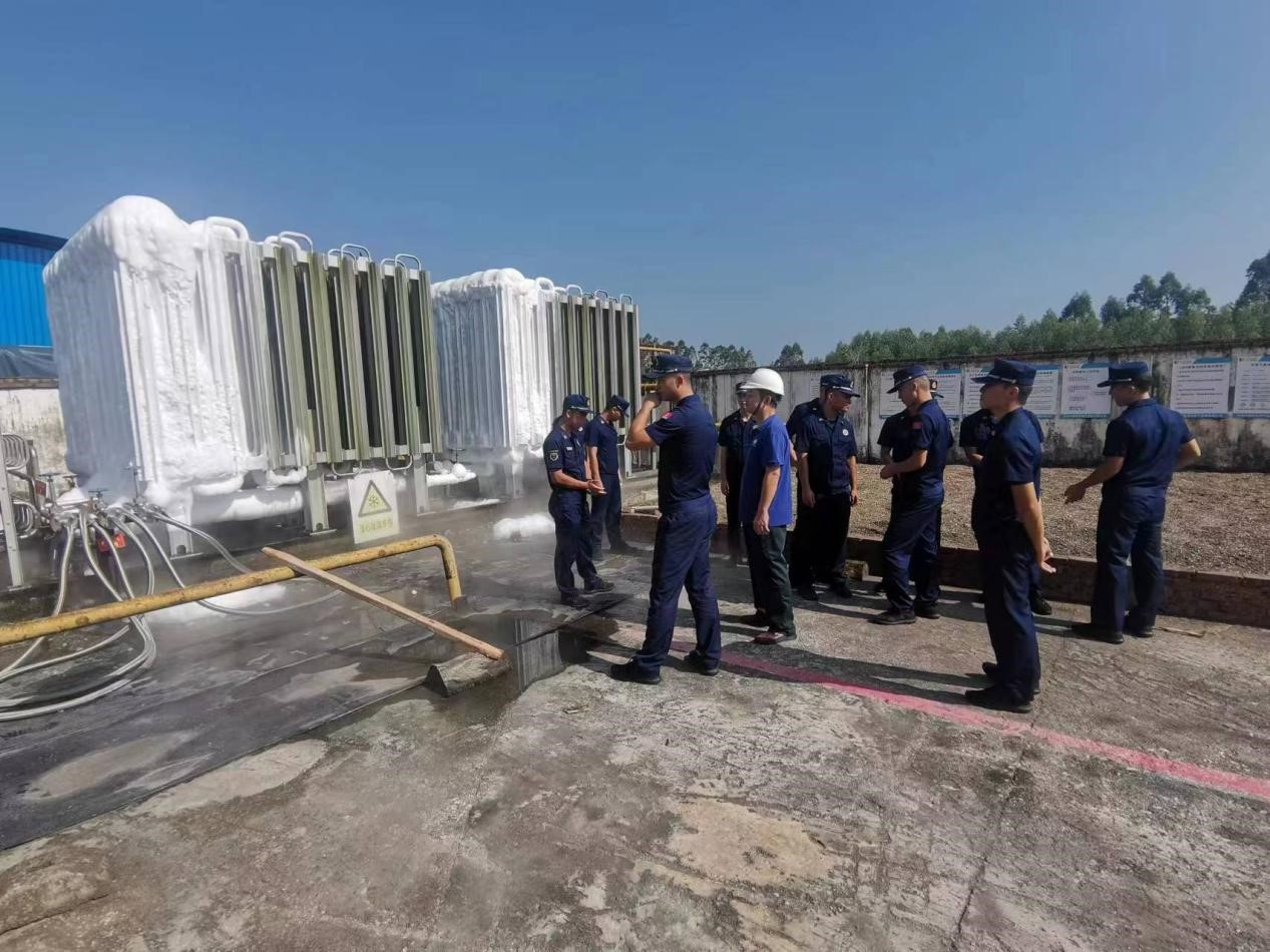 熊飛一行首先聽取了廣西鄂中安環(huán)處處長崔樹勤關(guān)于近幾月公司日常消防工作情況的匯報(bào),了解了公司消防工作的成果及重難點(diǎn)工作。隨后,指導(dǎo)組對公司各類消防基礎(chǔ)臺帳、消防檢查記錄等情況逐一詳細(xì)檢查和了解。在安環(huán)處處長的陪同下,指導(dǎo)組先后來到公司氨站、天然氣站、鍋爐等區(qū)域,實(shí)地查看排查電氣線路、消防器材、消防疏散通道、安全出口等落實(shí)情況和風(fēng)險(xiǎn)隱患。