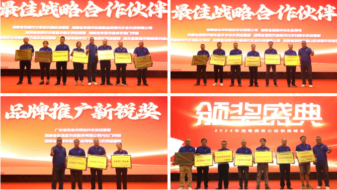大會頒發了“最佳戰略合作伙伴”和“品牌推廣新銳獎”,來自湘粵閩的21位優秀經銷商榮獲最佳戰略合作伙伴稱號。優秀經銷商代表湖南省湘西州吉首市金谷農資經營部楊葉英、廣東省清遠市飛鳴生態農業發展有限公司何飛明分別上臺發言。