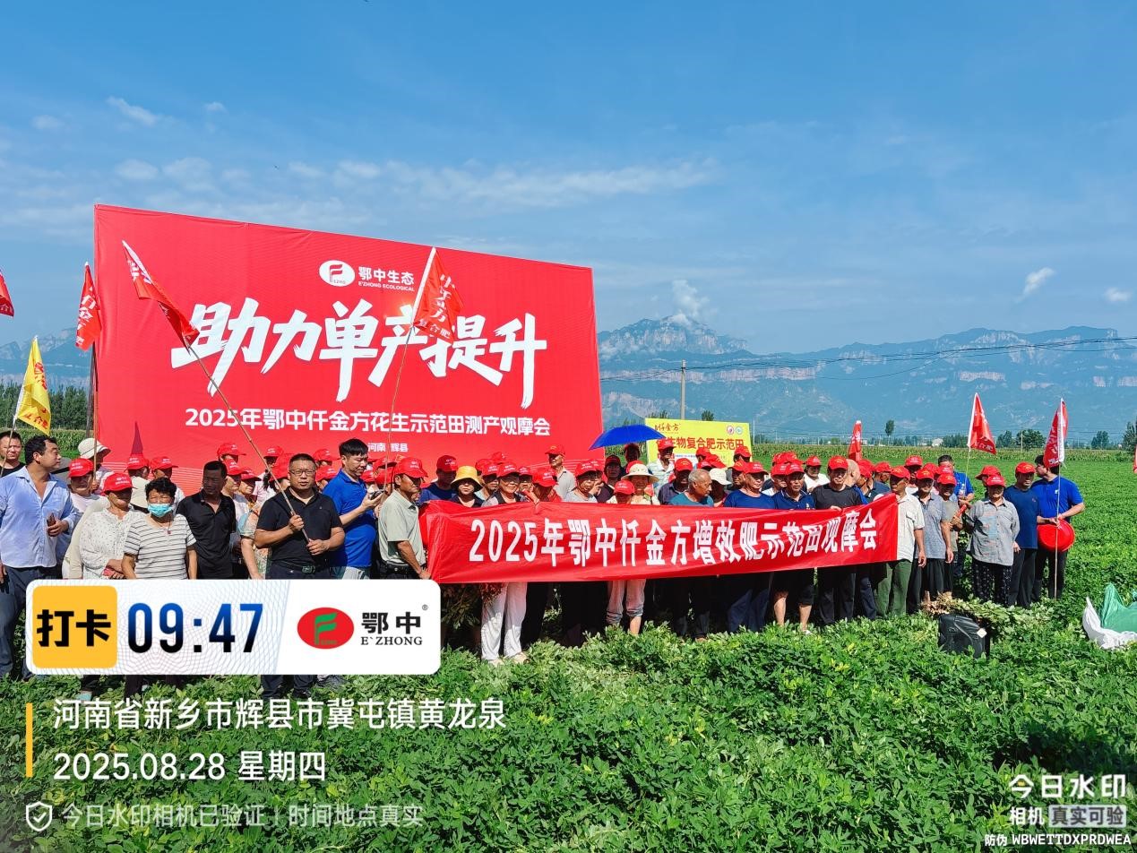 近日,一場“鄂中仟金方花生示范田觀摩會”在河南省新鄉市輝縣市翼屯鎮黃龍泉村熱鬧舉行。此次觀摩會匯聚了鄂中公司推廣部、農業技術專家、區域規模種植戶、經銷商及代理商等150余人,共同深入田間,實地考察并交流花生種植與肥料應用成效,現場氣氛熱烈,反響積極。