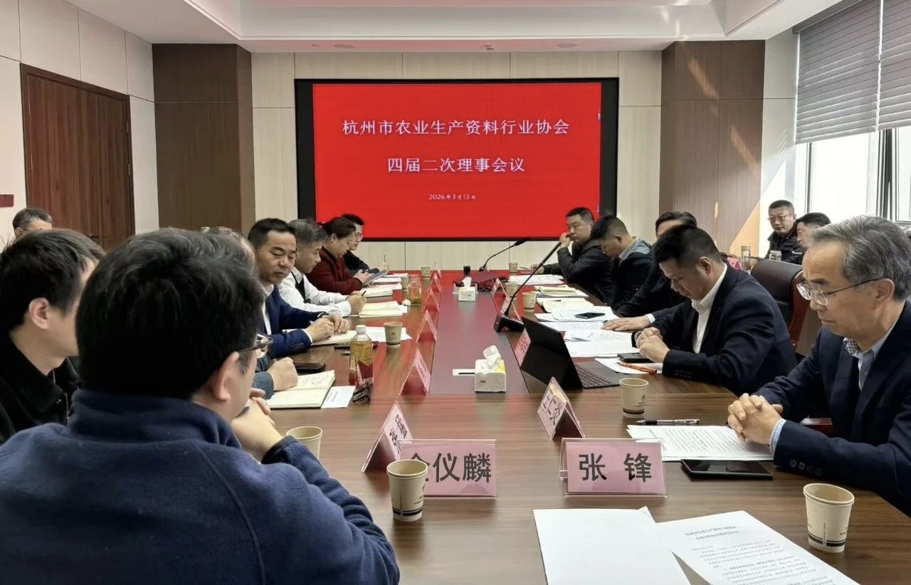 3月13日,杭州市農業生產資料行業協會四屆二次理事會議在臨平召開。市供銷社業務發展處處長江和平、協會會長李和豐及15家理事單位代表參會。湖北鄂中生態工程股份有限公司作為2026年新晉理事單位,由區域負責人代表出席,與業界同仁共商春耕農資保供穩價大計。