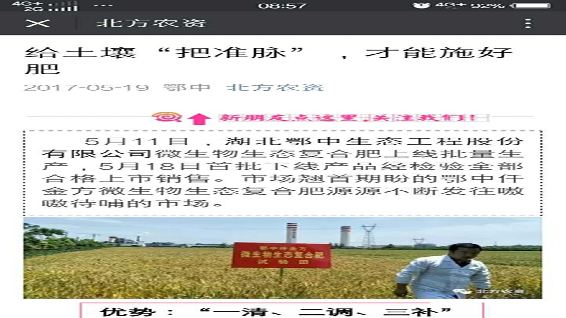 《北方農資》周刊新媒體關注鄂中仟金方微生物生態復合肥:給土壤“把準脈”,才能施好肥