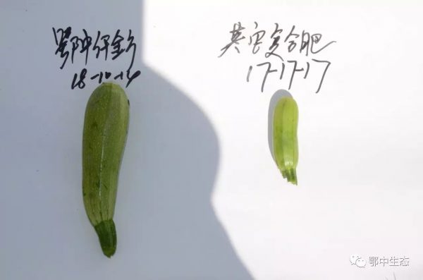 示范戶建光現(xiàn)場(chǎng)用事實(shí)說話:7月24日,我在1.2畝西葫蘆田里,其中0.6畝施用鄂中仟金方42%(18-10-14)做基肥25公斤,其中0.6畝地施用其他品牌復(fù)合肥(17-17-17)硫酸鉀做基肥35公斤。西葫蘆屬矮生品系,目前處于開花坐果期。示范田從整體長(zhǎng)勢(shì),開花坐果效果都非常明顯!葉片與對(duì)照田相比,長(zhǎng)勢(shì)旺但不徒長(zhǎng),葉片寬大且濃綠,葉柄粗壯,葉片無病斑,無葉落枯黃,無一死苗;而對(duì)照田西葫蘆葉片暗綠無光,葉片窄小,出現(xiàn)小面積死苗;示范田植株密度1900株,對(duì)照田植株密度只有1700株,示范田植株高度和整齊度明顯強(qiáng)于對(duì)照田;莖稈圓且粗壯,主蔓粗短,側(cè)蔓少,花梗粗壯,開花多,花絲更長(zhǎng);雌雄同株授粉率高,雄花單生旺;開花后,幼瓜黃萎少,而對(duì)照田幼瓜黃萎多,示范田少打1-3次藥,省工省時(shí),預(yù)測(cè)增產(chǎn)15%左右。