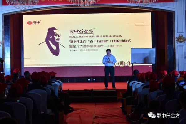 4月1日,鄂中仟金方“為中國億萬耕地療傷”行動,走進臺州-暨東南大區“百千萬普惠計劃”啟動儀式在浙江臺州開元大酒店,以購鄂中仟金方-看星光大道群星演唱會的公益演唱和推介的形式隆重舉辦并圓滿落幕。