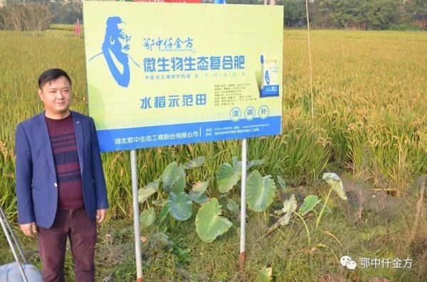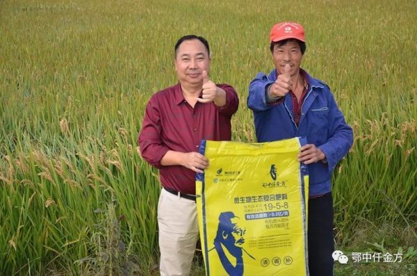 中南大區總經理李九稽總結分析介紹:鄂中仟金方是把無機養分、有機質、微生物菌群及復合內驅因子有機結合于一體的綜合集成科技成果,體現無機化學肥料、有機肥料以及微生物肥料的綜合效果,是當前農作物的首選肥料。鄂中仟金方肥料能夠利用空氣中的氮,通過有益菌生長代謝產生相應的酶和酸,可對土壤中難溶性的磷、鉀肥(土壤中難溶性磷肥占95%,難溶性鉀占98%)進行分解,從而成為水稻所能吸收的磷鉀營養。因此能夠大大提高水稻對肥料的利用率,從而減少肥料的施用量。在受災嚴重的情況下,還能保證水稻穩產不減產,甚至取得了節本增產增效的良好效果。