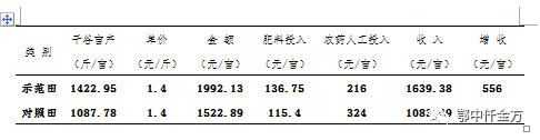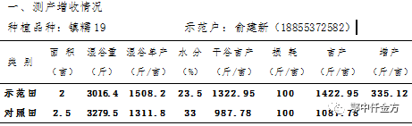 示范戶俞建新(電話:18855372582)仟金方示范田水稻(干谷)畝產達1422.95斤,對照田畝產(干谷)1087.78斤,與對照田綜合測定對比畝增產335.12斤,增幅達到30.8%。在當前水稻田普遍受災的情況下,仟金方示范田仍然比當地平均畝產量還增產210斤左右。跟對照田常規復合肥相比,每畝肥料多投入為21.35元,減少1次用藥和人工投入108元,共計少投入86.65元,減少肥料投入43.1%。按當地鮮谷市場價格(干谷)每斤1.4元計算,凈增收556元。鄂中仟金方凸顯出節本減量、增產增效、種地養地、防病抗病等優良的示范效果。