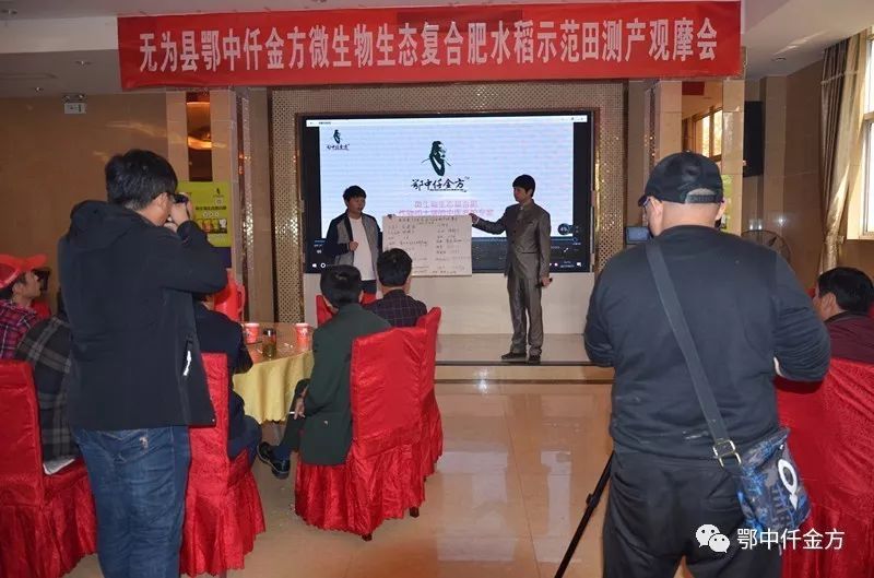 觀摩會后,又召開了鄂中仟金方微生物生態復合肥產品推介會,現場播放了仟金方的品牌故事,東南大區總經理李九稽現場講解了仟金方作用機理及在全國各地的肥效表現,示范戶俞建新現場講解仟金方施用過程,施肥技術等相關內容。見證人共同發布了測產的真實數據和肥效。隨后無為縣鄂中代理商范躍明(電話:18325370099)與零售商、種植大戶進行了座談交流。通過此次觀摩和座談,與會人員看到了鄂中仟金方肥料的品牌優勢,極大的鼓舞了零售商推廣鄂中仟金方的信心,之前對鄂中仟金方持懷疑態度的種植大戶打消了疑慮,對鄂中仟金方有了新的認識,對水稻種植表現和市場需肥潛質有了更進一步的認識。紛紛表示鄂中仟金方今后將快速的推廣和購買。鄂中仟金方也將為糧食增產、減肥增效、提高農產品品質及農民增收做出新的貢獻,實現化肥施用量零增長目標!