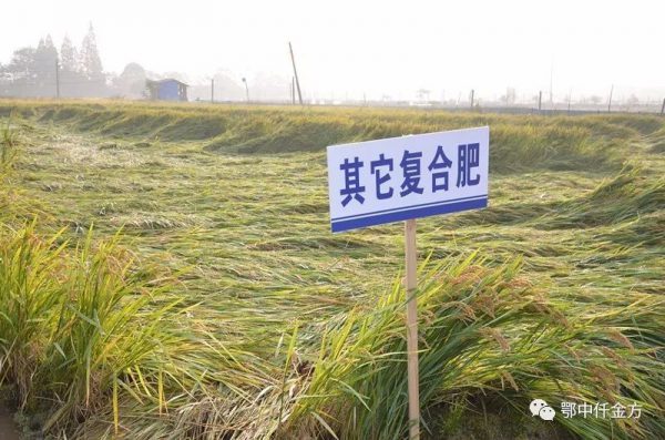 “6月25日在這里召開的水稻分蘗期觀摩會,我已經把鄂中仟金方肥料的效果展示給全國農民看了,示范田秧苗長勢喜人,根系發達,葉色濃綠、苗稈粗壯、分蘗多而整齊,今天增產豐收見證的時刻到了!”示范戶俞建新興奮地介紹說:“我標準示范田2畝(通過GPS測畝儀測定),每畝施用仟金方32%(19-5-8)60斤(基肥40斤、追肥20斤),每畝追施尿素10斤,鉀肥4.5斤;標準對照田2.5畝(通過GPS測畝儀測定),每畝施用常規復合肥51%(17-17-17)60斤(基肥40斤、追肥20斤),每畝追施尿素30斤,鉀肥3.6斤?!庇峤ㄐ伦詈笱a充說明:我的示范田是鄂中生態集團免費贈送的成品肥,還全程免費贈送施肥種植技術。
