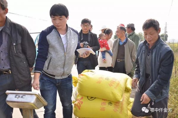 10月21日,天剛放晴,鄂中生態東南大區總經理李九稽率鄂中仟金方中醫養護隊員,在蕪湖市無為縣泉塘鎮竹元村召開了搶收中的鄂中仟金方水稻示范田現場測產觀摩會。來自無為縣土肥站農技專家、鄂中生態農化專員、渠道商、科技示范戶、農業專家及周邊種糧大戶共100余人,現場觀摩見證了鄂中仟金方水稻測產全過程。國內知名媒體華文傳媒參與了現場二次拍攝見證(6月25日,在該示范田召開水稻分蘗期觀摩會,外國農業學者等多名專家見證了鄂中仟金方微生物生態復合肥的顯著肥效)。在嚴峻的災情面前,在農民對仟金方究竟能否增產增收的觀望情況下,仟金方示范田測產結果怎樣?能否增產增收?都面臨著迫切的期盼!
