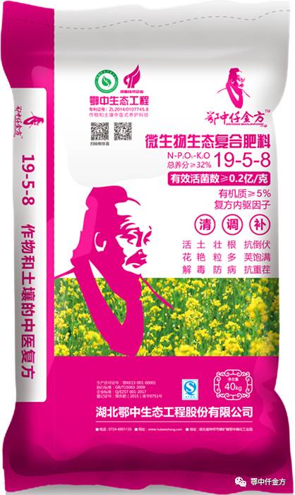 鄂中仟金方微生物生態復合肥油菜專用肥是具有中醫式生態預防和修護功能的創新型微生物生態肥料,由鄂中傳統農業研究院與華中農業大學生命科學研究院農用微生物國家實驗室聯合推出。內含特別助劑“復方內驅因子”,承襲世界長壽之鄉湖北鐘祥的長壽奧秘,吸取中國千年傳統農耕精妙,能有效改善土壤、作物健康和生態農產品品質,造福人類健康。
