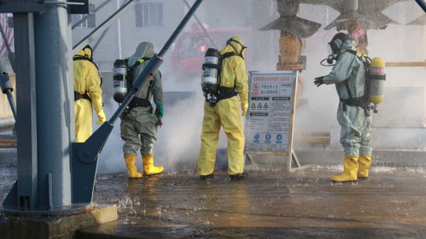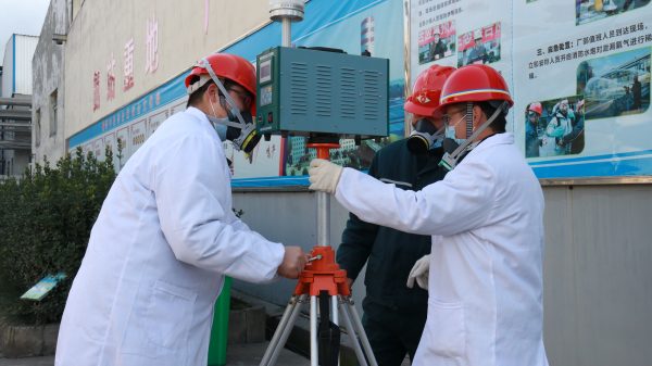 演練現場,只見警戒人員封鎖現場實施現場控制,嚴禁無關車輛和人員誤入“事發現場”,消防人員快速從上風口迂回到液氨罐區,使用噴淋裝置對泄漏液氨進行再稀釋。同時,4名消防員迅速穿戴好防化服,正壓呼吸器,進入“現場”進行檢查,醫療人員對受傷人員快速救護,檢查修人員緊急處理泄漏點。