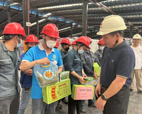 興賓區委副書記唐彥樂 為廣西鄂中職工“送清涼”