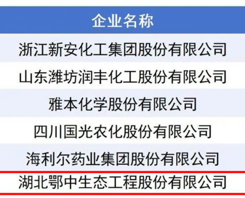 鄂中生態入選中國民企發明專利500強