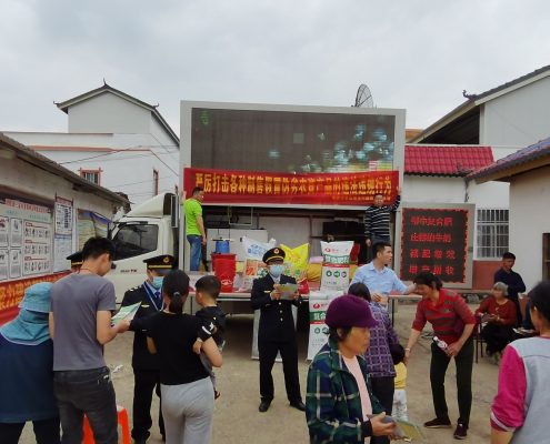 (圖為來賓市農業農村局工作人員及鄂中農化師為農戶講解如何辨別肥料真假)